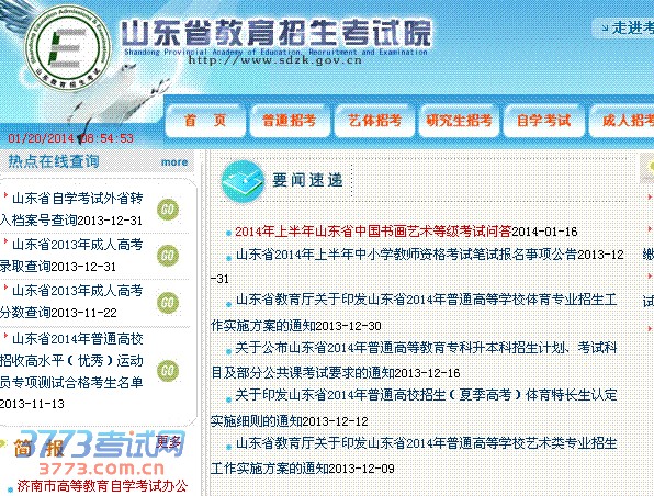 2014山东美术统考成绩查询网址:http://www.sdzs.gov.cn/