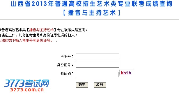 我省2013年普通高校艺术类播音与主持专业省联考顺利结束,成绩于2月1日公布。考生可凭考生号和身份证号登录山西招生考试网(www.sxkszx.cn)查询成绩。