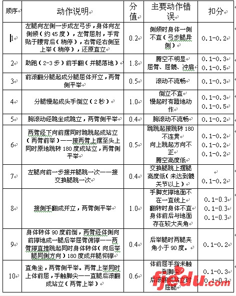根据考生临场技术发挥水平,战术运用能力,场上意识和比赛作风(团结协作,拼搏精神等)综合评分,满分为10分。