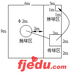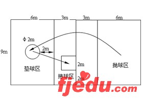 说明:a.垫球区圆圈直径 2米 ,前沿距进攻线 2米 。