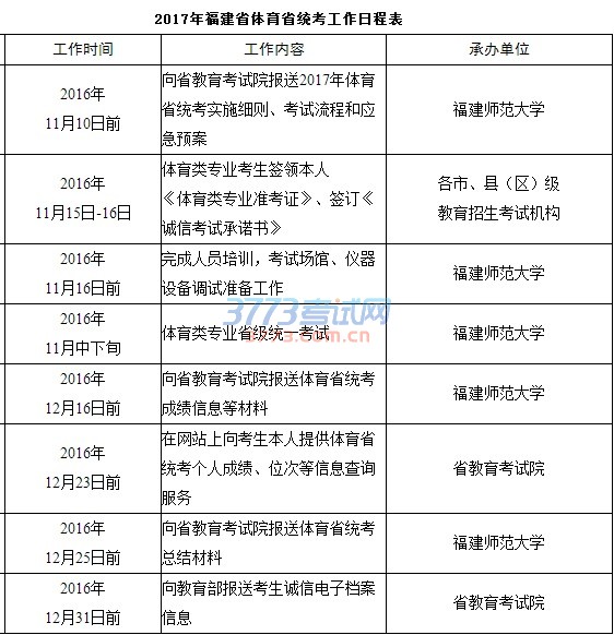 11月10日前 向省教育考试院报送2017年体育省统考实施细则、考试流程和应急预案 福建师范大学