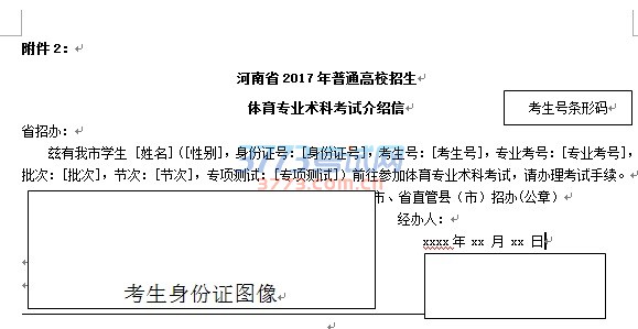 兹有我市学生 [姓名] ([性别],身份证号:[身份证号],考生号:[考生号],专业考号:[专业考号],批次:[批次],节次:[节次],专项测试:[专项测试])前往参加体育专业术科考试,请办理考试手续。