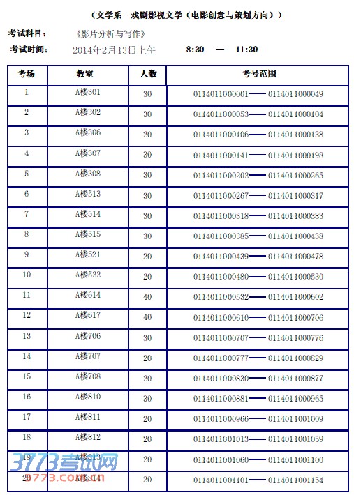 北京电影学院2014年文学系电影创意与策划方向复试考场安排