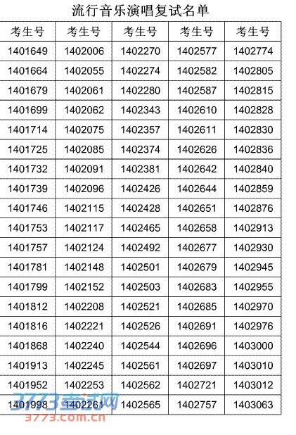 星海音乐学院2014流行音乐演唱专业考试复试名单