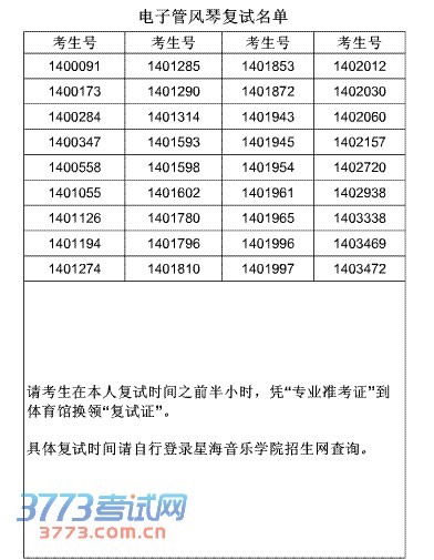 2014星海音乐学院本科招生考试复试名单(电子管风琴)