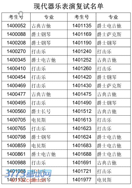 2014星海音乐学院现代器乐表演招生考试复试名单