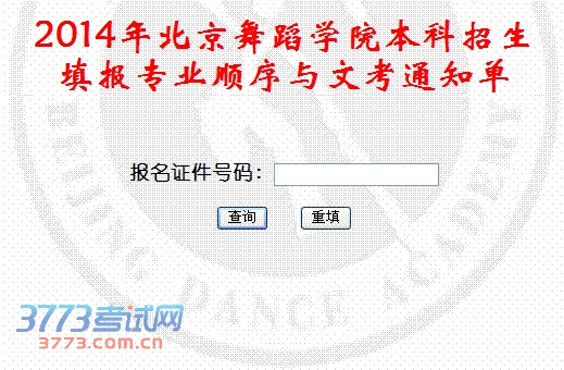 北京舞蹈学院2014年填报专业顺序与文考通知单
