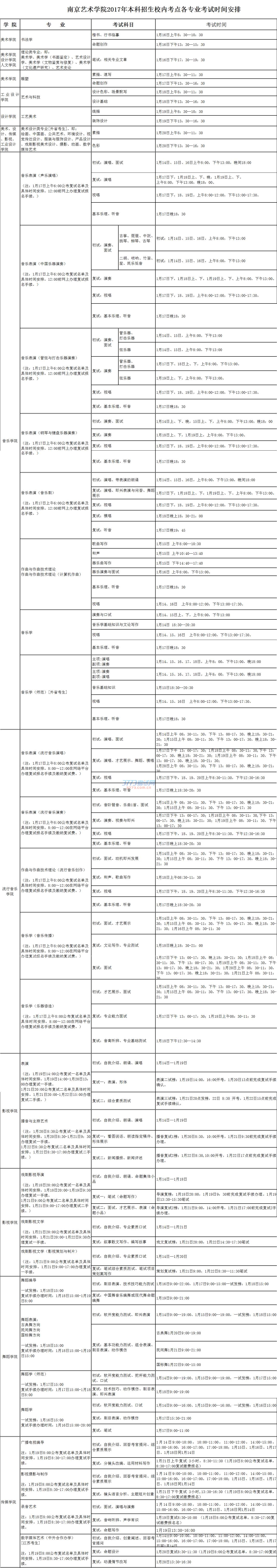 南京艺术学院2017年本科招生校内考点各专业考试时间安排