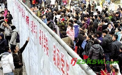 下午2点,一名来自广西的考生李楚,在北电放榜处开心地跟父母报喜讯,“北电、上戏都过了。”“我已经赶场一天了。早上8点在北京电影制片厂参加完重庆大学表演系的复试后,就赶到中戏看榜,可惜没过。接着就赶来北电了。还好北电过了,挺开心的”。据了解,今年考生相对理智,没有因为落榜而情绪失控的。多数考生都表示,只想来试一把,不让自己留遗憾。