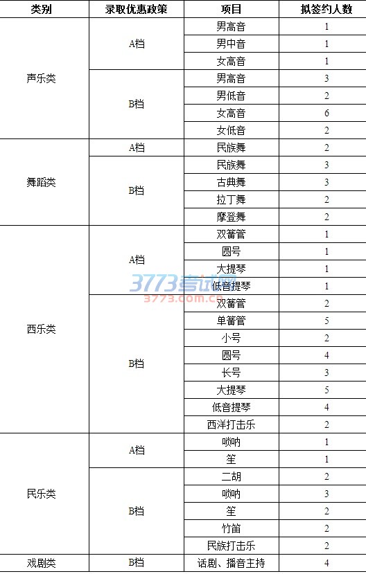 2017年高水平艺术团招生计划38人,公示拟签约人数不超过76人,本年拟招生项目及计划见下表。