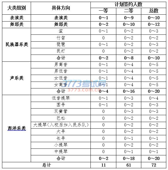 招生计划不超过学校2016年度本科招生计划的1%,共计36人,按照招生计划数的2倍认定合格考生。每位考生只能选报一个艺术特长项目,不得兼报。