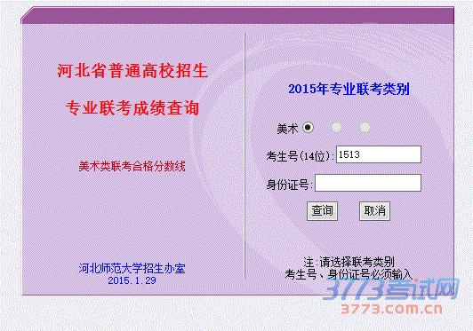 2015年河北高考音乐类(分声乐和器乐,下同)和舞蹈类专业联考工作已全部结束,考试成绩2月14日9时公布,考生可登录河北师范大学招生信息网(网址:http://zsjy.hebtu.edu.cn/zsw/)查询联考成绩。
