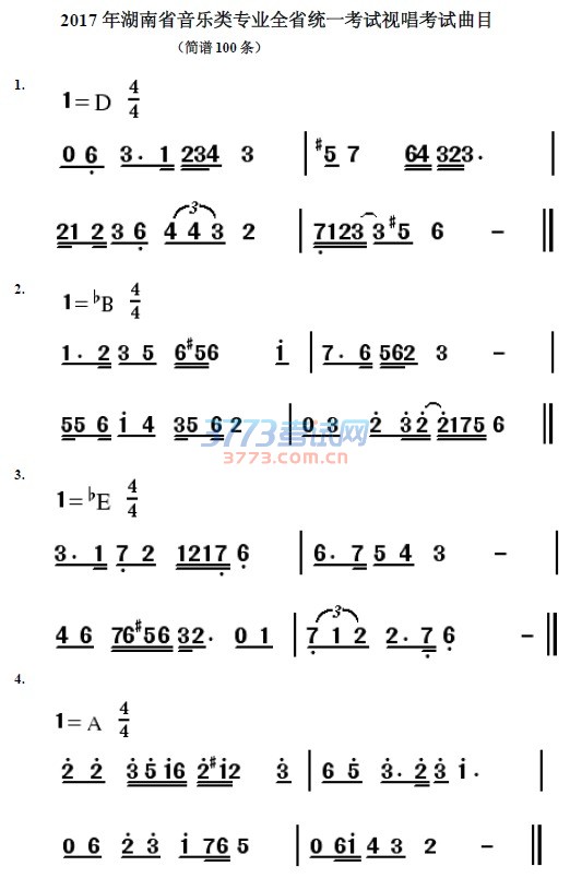 附件:2017年湖南省音乐类专业全省统一考试视唱考试曲目