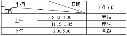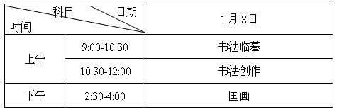 考试时间安排与普高美术类相同。2017年1月2日考生凭《专业考试证》、第二代居民身份证到湖南师范大学工程与设计学院报到缴费,参加专业考试。