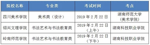 1月21日,湖南省教育考试院公布了2019年省外艺术类院校(专业)来湘校考有关事项安排表,其中,美术(含设计)类和书法类艺术专业的校考只公布了报名及考试时间,考点待定。