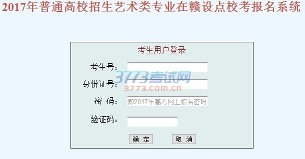 2017年普通高校招生艺术类专业在赣设点校考报名系统考生用户登录考生号: 身份证号: 密 码: 验证码: 温馨提示: 一、网上报名从1月20日8:00开始(期间1月26日-31日停止报名),2月1日(正月初五)8:00继续开始报名。 二、为防止春节后报名网路拥堵,请选报2月6日、2月7日、2月8日三天开考高校的考生,尽量在春节前完成报名和缴费。