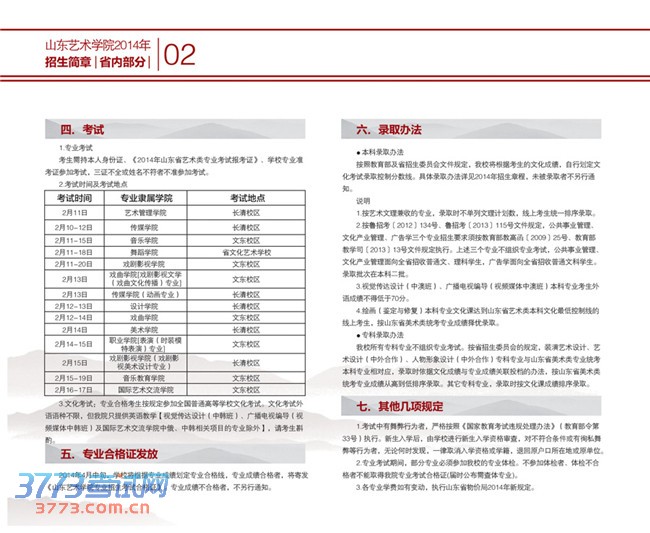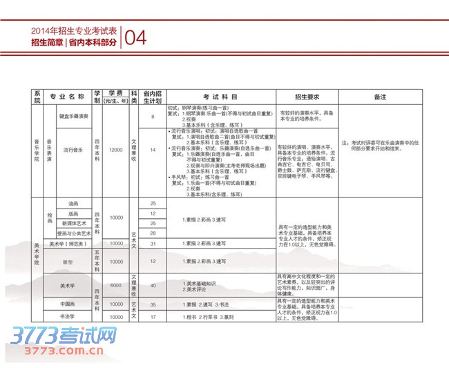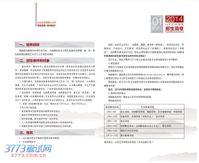 山东艺术学院2014艺术类专业校考考点时间(河南)