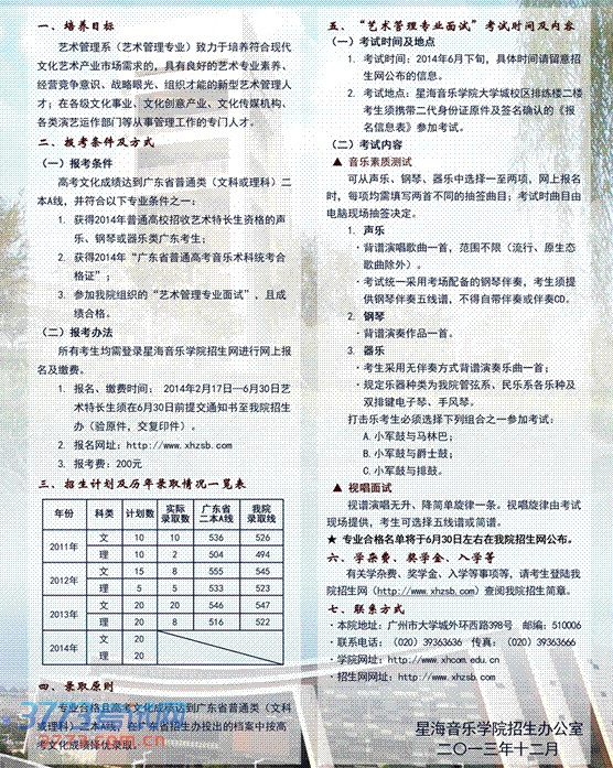 星海音乐学院2014年艺术管理专业报考指南(面向广东省招生)