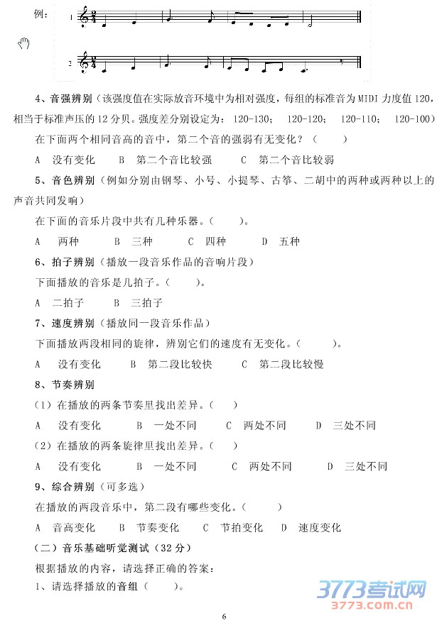 2015年本科面向外省招生考试乐理和视唱练耳题型示例及“机考”方式的通知
