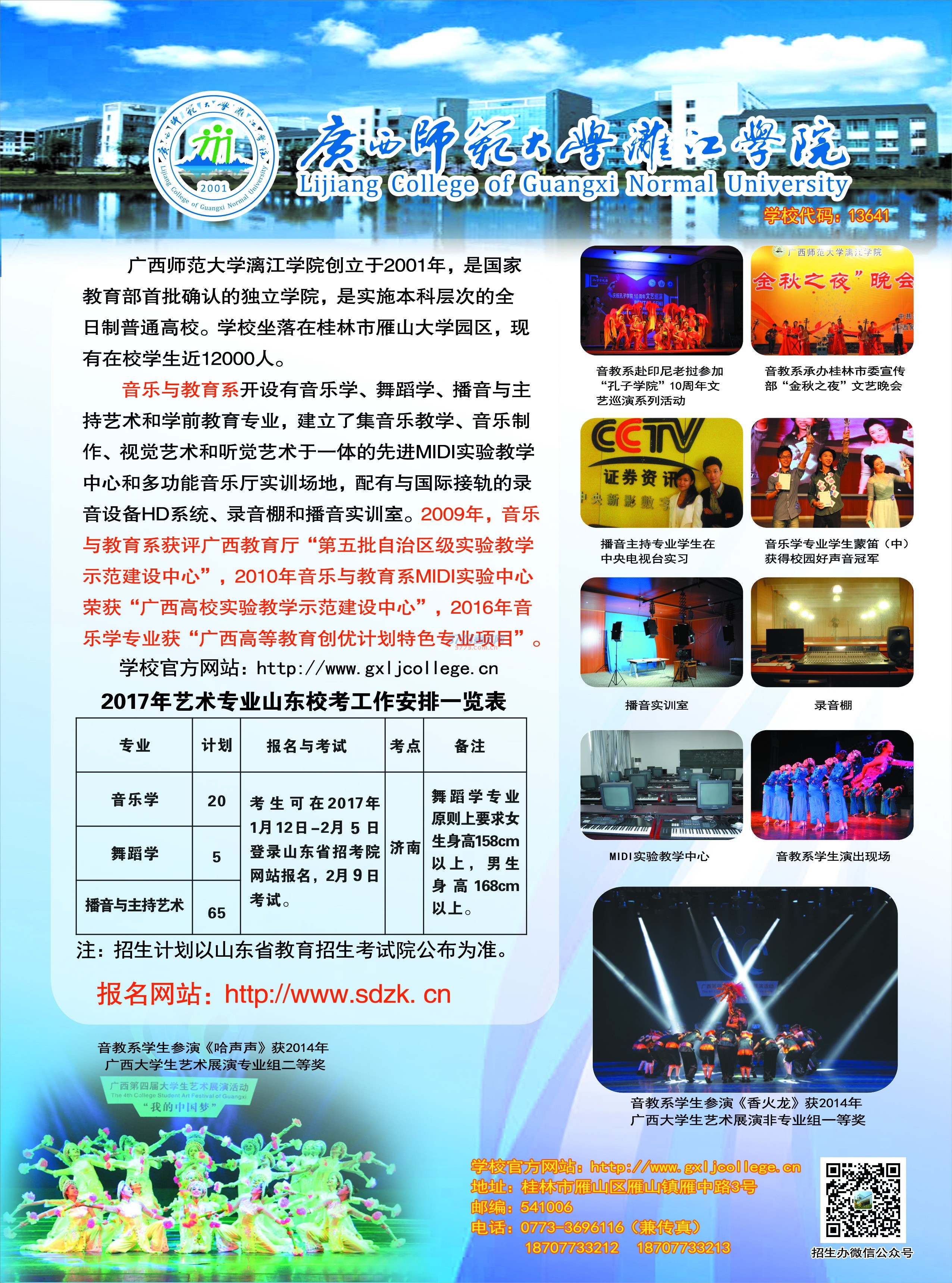 2017广西师范大学漓江学院山东省艺术校考招生简章