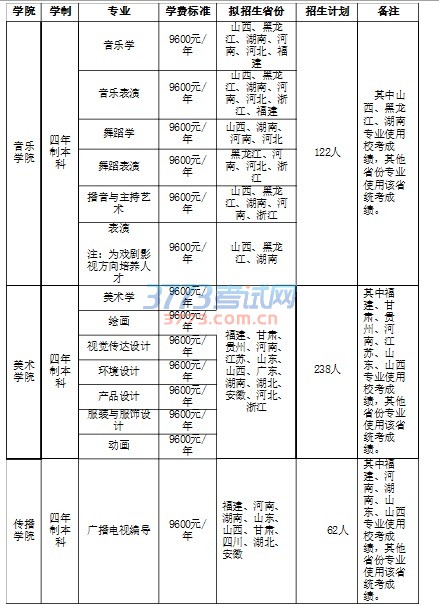其中山西、黑龙江、湖南专业使用校考成绩,其他省份专业使用该省统考成绩。