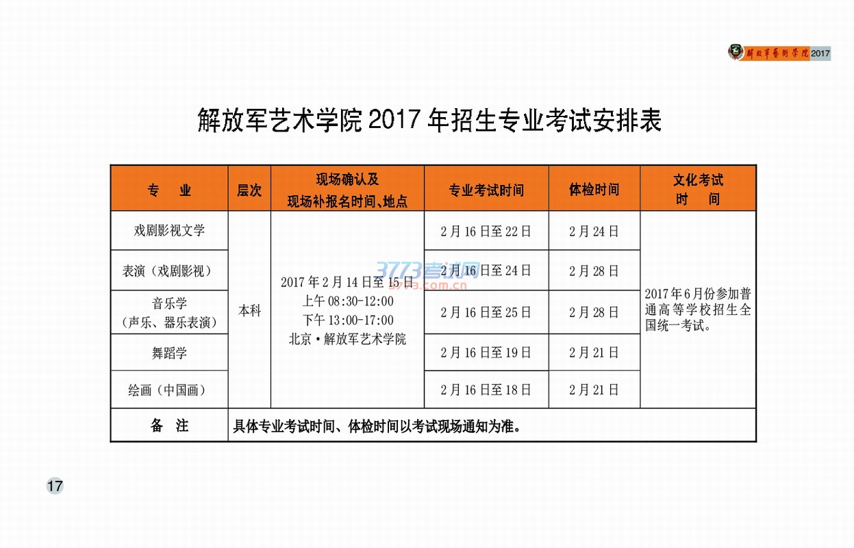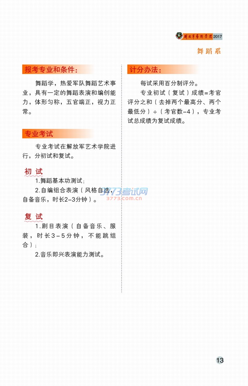 2016解放军艺术学院舞蹈系进复试公榜(中专