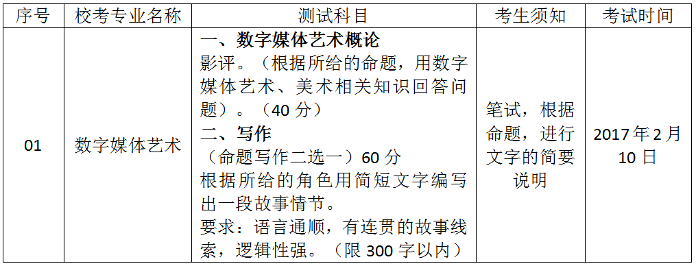 北海艺术设计学院数字媒体艺术专业测试大纲