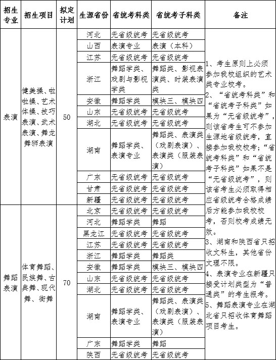面向部分省市拟招收120人,表演专业拟招50人,舞蹈表演专业拟招70人。