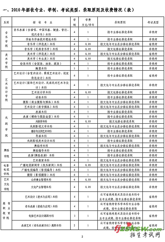 招生考试网 - 2010年艺考 - 招生简章 - 正文