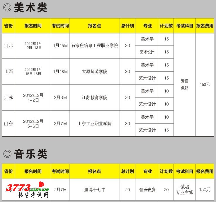 2012年我校在全国美术类招生计划为380人,音乐类招生计划130人,在全国另有预留计划80人(美术60,音乐20),生源充足的情况下可扩大招生计划。
