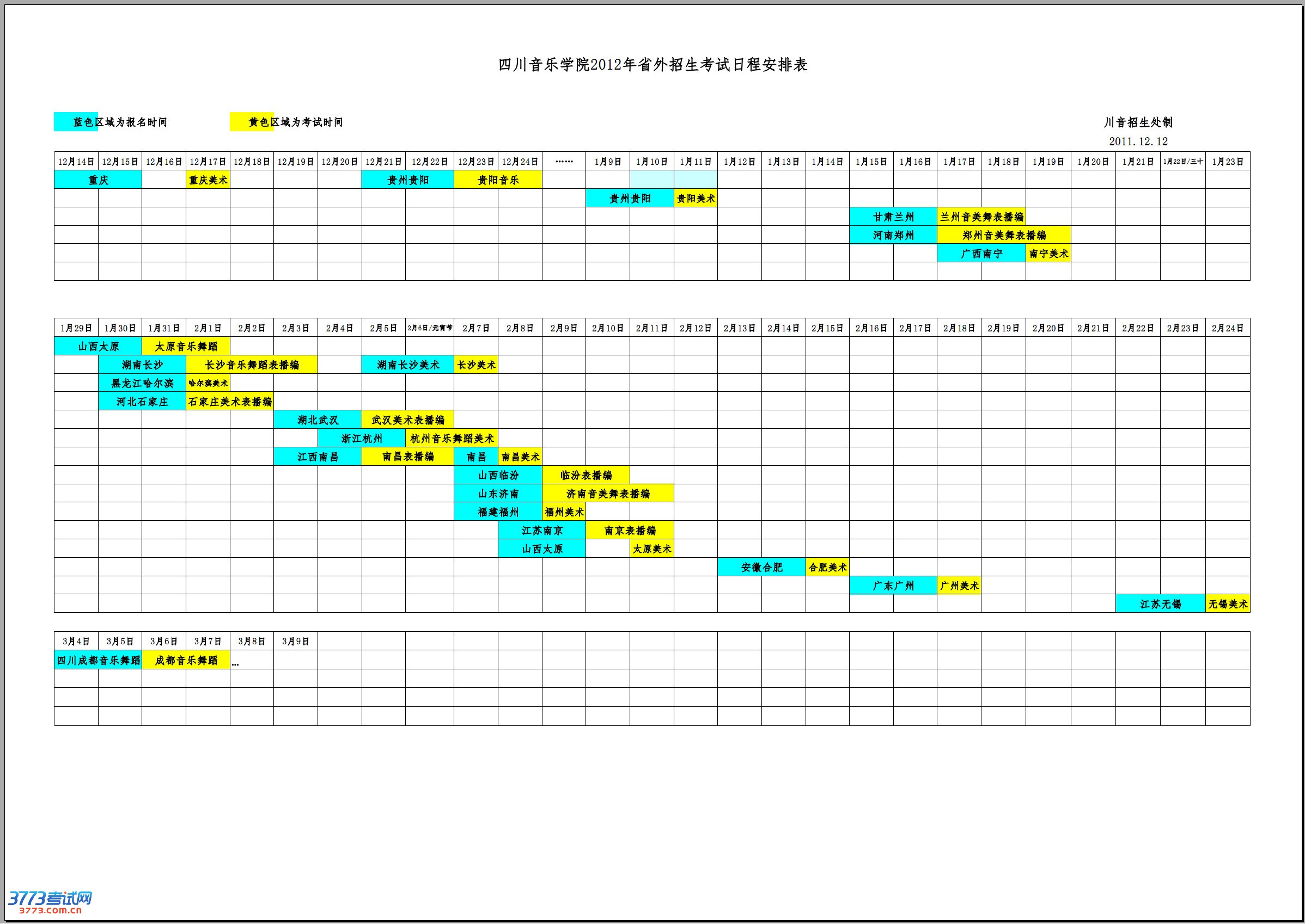 四川音乐学院校本部(成都市新生路6号) 专业报名时间: