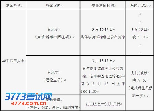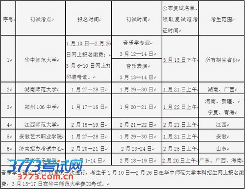 在湖北考点参加初试的考生须在规定时间登录我校招生网http://zs.ccnu.edu.cn进行网上报名缴费,考生须上传个人电子照片,考生于3月6-10日登录我校招生网打印准考证,凡未进行网上缴费的,视报考信息无效。在广东考点参加初试的考生须在规定时间登录星海音乐学院招生网http://www.xhzsb.com/进行网上报名。
