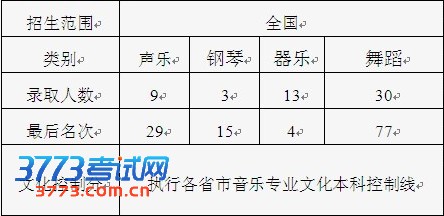备注:音乐表演(器乐方向)录取最后名次为某一器乐种类录取的最后名次。