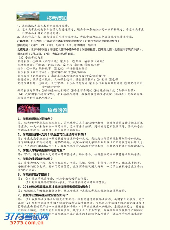 广东亚视演艺职业学院2011年艺术招生热点问答