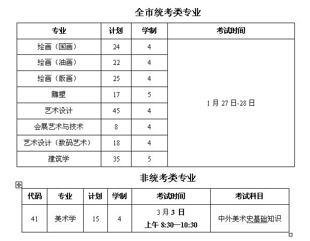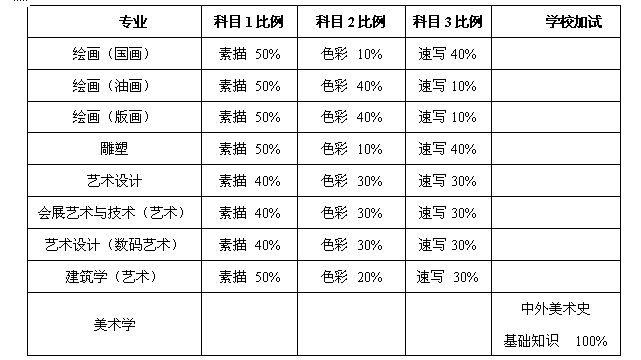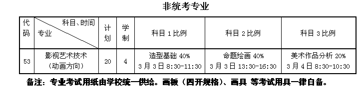 备注:专业考试用纸由学校统一供给。画板(四开规格)、画具、乐器等考试用具一律自备。