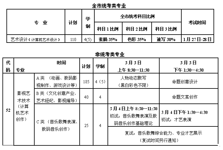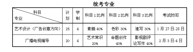 艺术设计(广告创意方向)和广播电视编导专业参加全市统考;