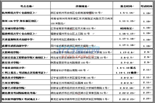 山东工艺美术学院2017年本科招生专业考试省外各考点时间安排
