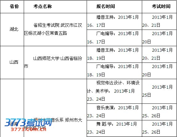 3773考试网 - 艺考 - 专业校考考点 - 正文