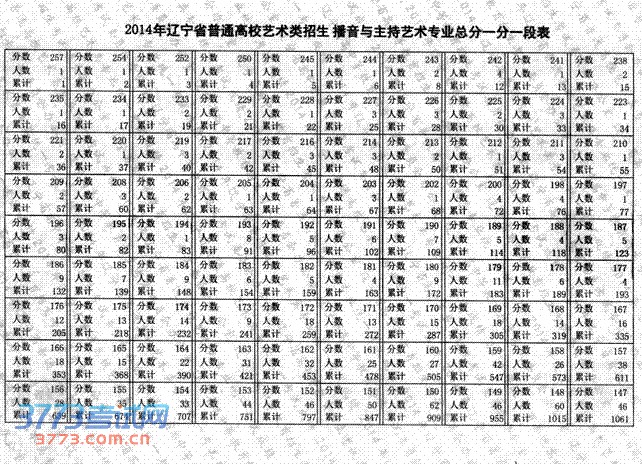 2014辽宁播音主持艺术专业统考成绩一分一段表