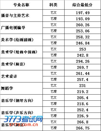 艺术分数线