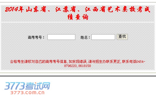 2014年佳木斯大学美术类、音乐舞蹈类、播音主持成绩查询已经开通,成绩查询网址:http://218.7.123.162/search/ys2010search/index.asp