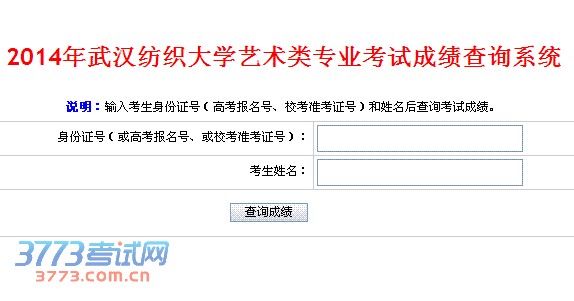 武汉纺织大学2014年艺术类专业校考成绩查询:http://zjc.wtu.edu.cn/art/getscore.jsp