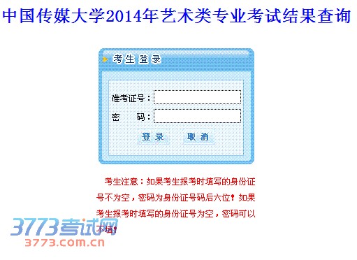 考生注意:如果考生报考时填写的身份证号不为空,密码为身份证号码后六位!如果考生报考时填写的身份证号为空,密码可以不填!