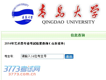 青岛大学2014年艺术类专业考试结果查询(山东省外)网址: