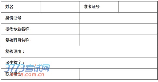 若考生对成绩有异议,需要复核,请按照以下格式填写成绩复核申请表,并于4月4日前传真至天津大学(022-27401800自动接收传真),我校将于4月8日左右集中通知考生本人复核结果。