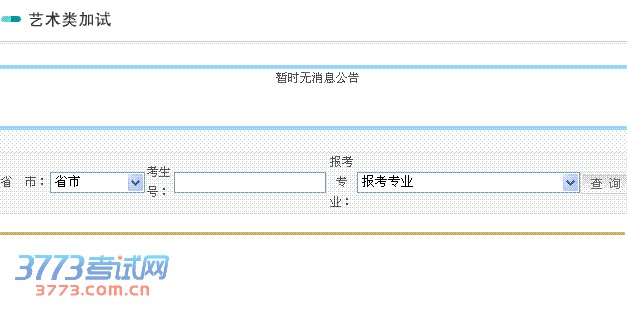 省 市: 省市 安徽 吉林 山西 辽宁 黑龙江 河北 湖南 山东 考生号: 报考专业: 报考专业 广播电视编导(数码影视制作方向) 艺术设计学 摄影 戏剧影视文学 表演(民间艺术表演方向) 表演(民间器乐方向) 广播电视编导 表演