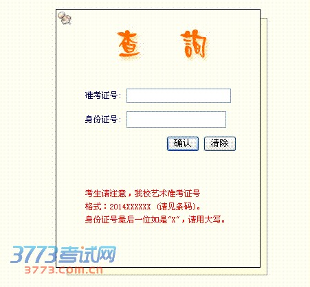 考生请注意,我校艺术准考证号。格式:2014XXXXXX (请见条码)。身份证号最后一位如是"X",请用大写。