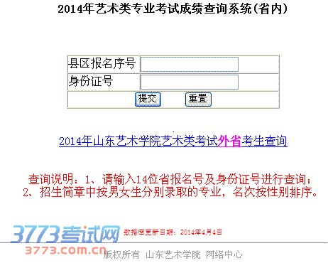 山东艺术学院2014年艺术类专业考试成绩查询(山东省内)