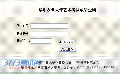 华中农业大学2014年艺术类校考成绩查询入口 各位考生: