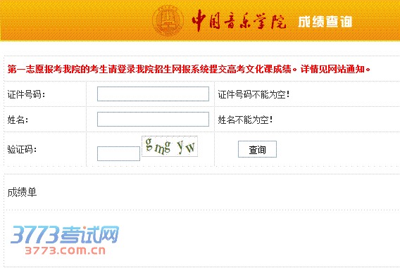 中国音乐学院2014年艺术类专业校考成绩查询:http://zhaosheng.ccmusic.edu.cn/scorequery.aspx